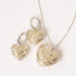 Heart-Shaped Pendant & Earrings which comes with a chain, This Intricate jaali work set has the inscription “Le Coup de Foudre” engraved on one side and “Love at First Sight” on the other.